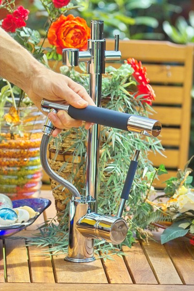 verfügt außerdem über eine ausziehbare Spülbrause, mit der Sie den Radius der